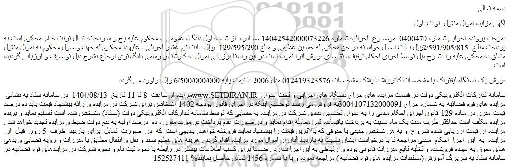 آگهی مزایده اموال منقول نوبت اول
