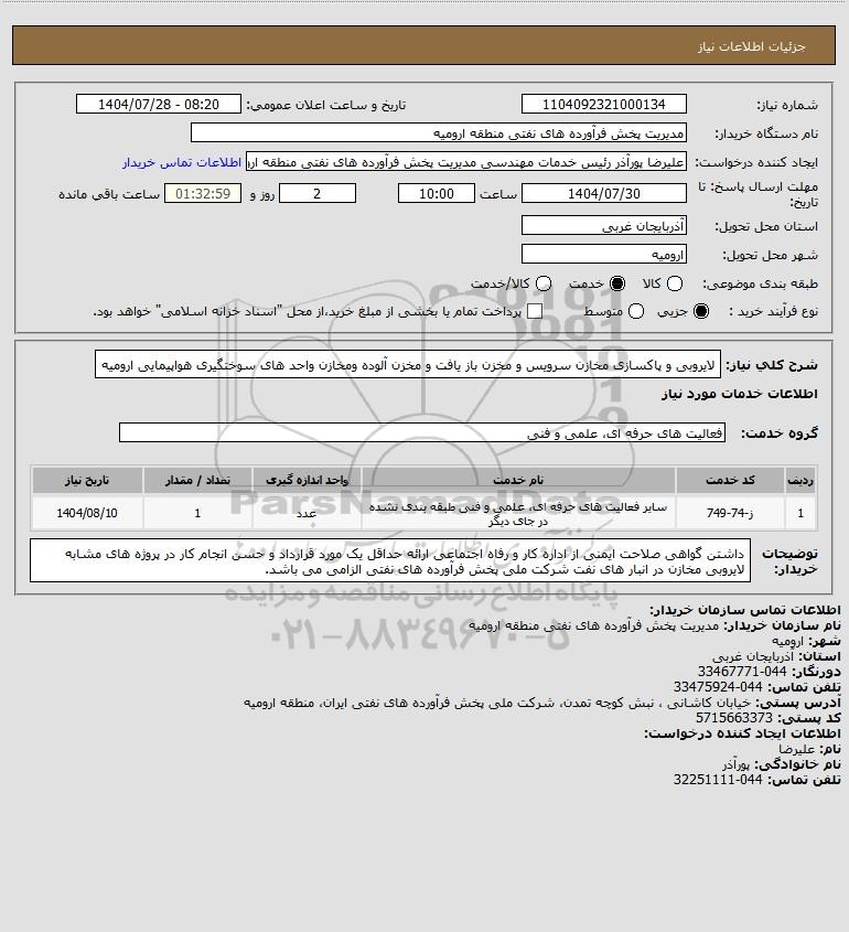 استعلام لایروبی و پاکسازی مخازن سرویس و مخزن باز یافت و مخزن آلوده ومخازن واحد های سوختگیری هواپیمایی ارومیه, استعلام لایروبی و پاکسازی مخازن سرویس و مخزن باز یافت و مخزن آلوده ومخازن واحد های سوختگیری هواپیمایی ارومیه