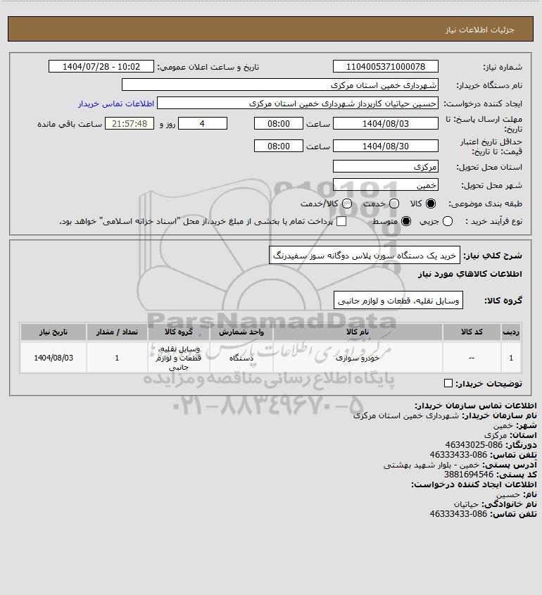 نام دستگاه خریدار:شهرداری خمین استان مرکزی