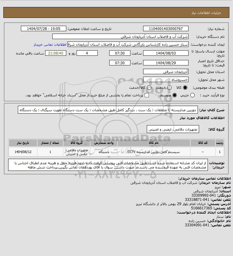 1 -- سیستم کامل دوربین مداربسته CCTV دستگاه تجهیزات دفاعی، ایمنی و امنیتی 1 1404/08/12