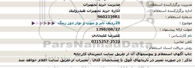 استعلام 26 ردیف تایر و تیوپ و نوار دور رینگ , استعلام , استعلام 26 ردیف تایر و تیوپ و نوار دور رینگ