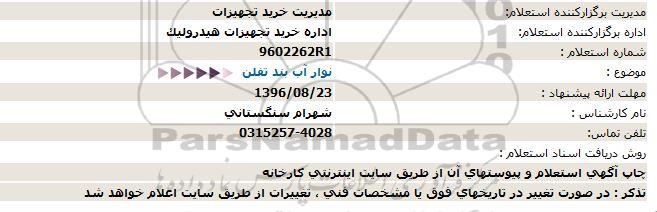 اداره برگزارکننده استعلام: اداره خرید تجهیزات هیدرولیک