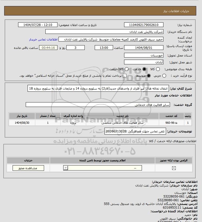 استعلام انتقال نخاله های غیر فلزی از واحدهای جدید(فاز2) به سلویج دروازه 14 و ضایعات فلزی به سلویج دروازه 18, استعلام انتقال نخاله های غیر فلزی از واحدهای جدید(فاز2) به سلویج دروازه 14 و ضایعات فلزی به سلویج دروازه 18