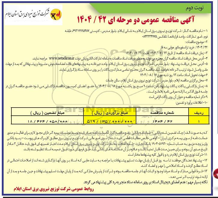 آگهی مناقصه عمومی دو مرحله ای 42 . 1404
