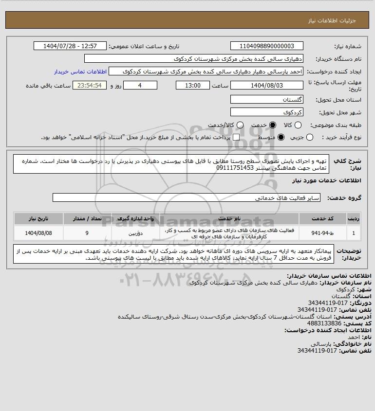 شرح کلی نیاز: تهیه و اجرای پایش تصویری سطح روستا مطابق با فایل های پیوستی