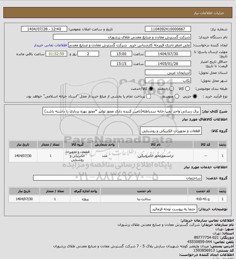 نام دستگاه خریدار:شرکت گسترش معادن و صنایع معدنی طلای زرشوران