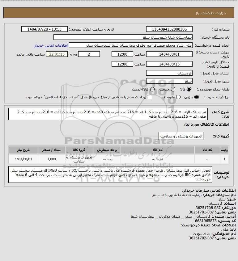 نام دستگاه خریدار:بیمارستان شفا شهرستان سقز