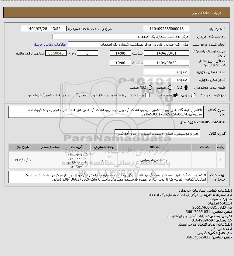 نام دستگاه خریدار:مرکز بهداشت شماره یک اصفهان