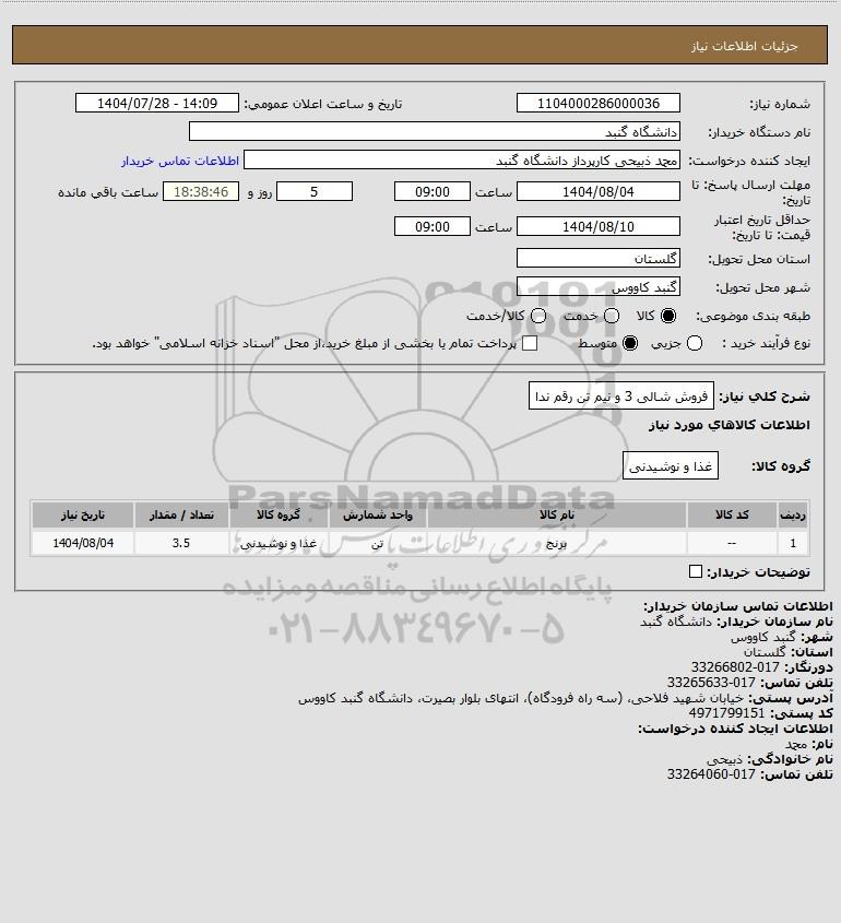 شرح کلی نیاز: فروش شالی 3 و نیم تن رقم ندا