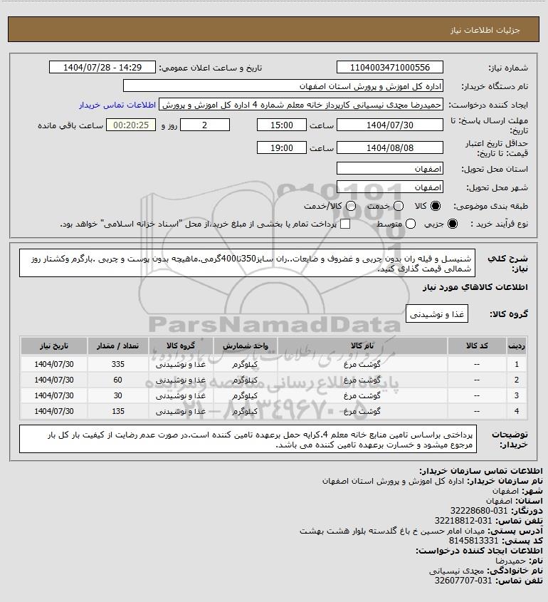نام دستگاه خریدار:اداره کل اموزش و پرورش استان اصفهان