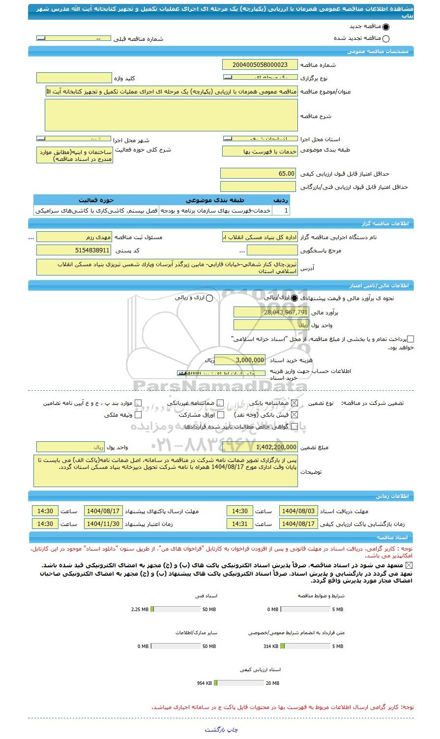 | شماره مناقصه | 2004005058000023 | ||||||||