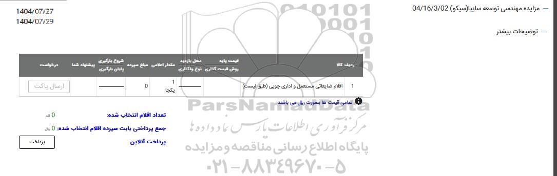 مزایده مهندسی توسعه سایپا (سیکو) 04/16/3/02