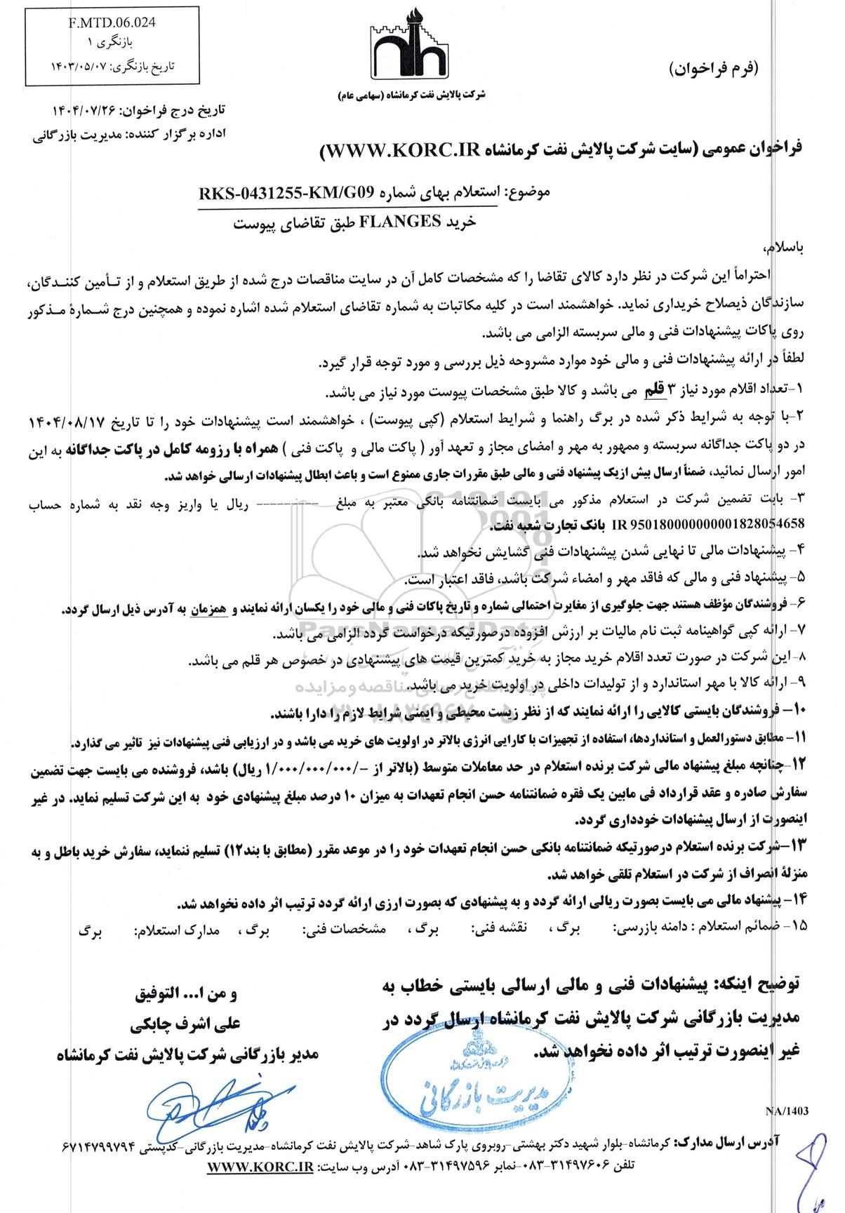 فراخوان عمومی (سایت شرکت پالایش نفت کرمانشاه WWW.KORC.IR)