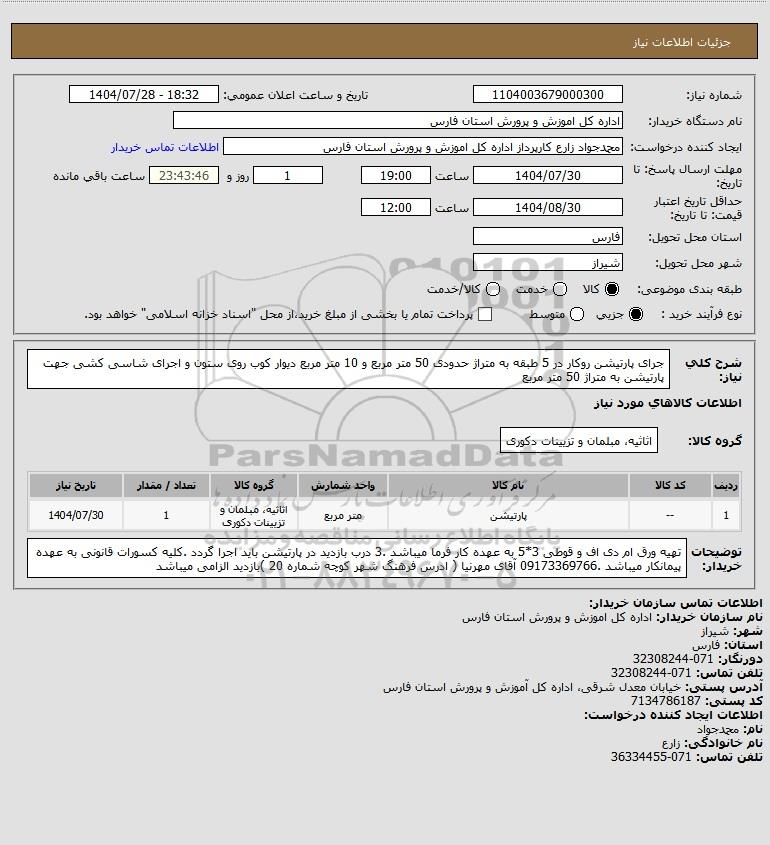 نام سازمان خریدار: اداره کل اموزش و پرورش استان فارس