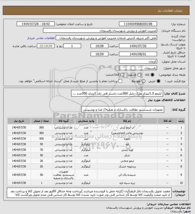 نام دستگاه خریدار:مدیریت اموزش و پرورش شهرستان رفسنجان