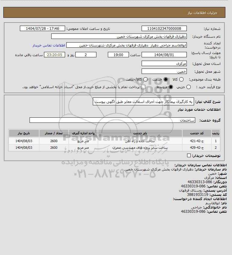 شرح کلی نیاز: به کارگیری پیمانکار جهت اجرای اسفالت معابر طبق اگهی پیوست