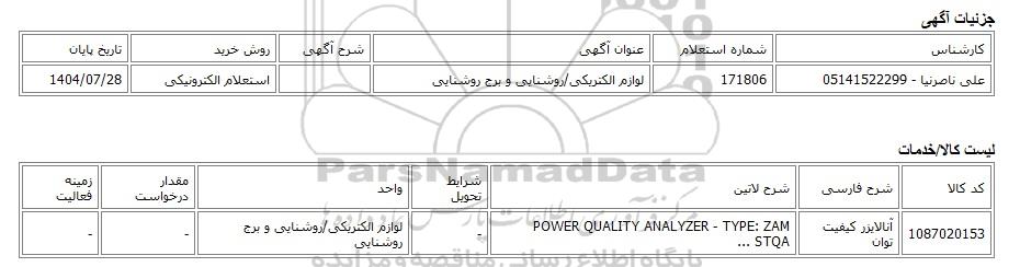علی ناصرنیا - 05141522299171806لوازم الکتریکی/روشنایی و برج روشناییاستعلام الکترونیکی1404/07/28