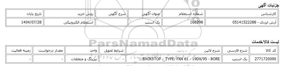 آرش ایزدی - 05141522288 | 168298 | بک استپ | استعلام الکترونیکی | 1404/07/28 |