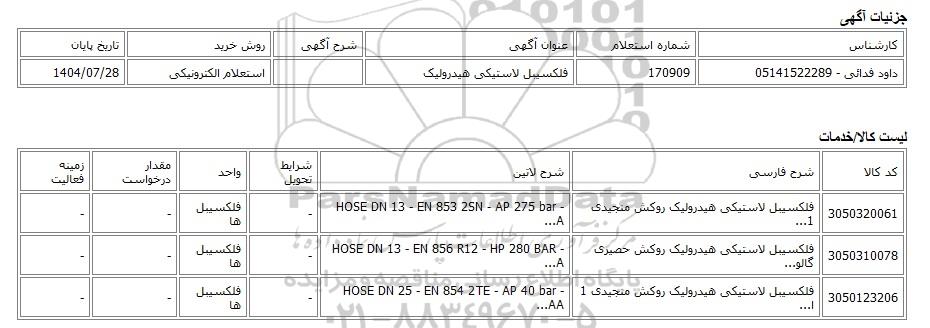 داود فدائی - 05141522289170909فلکسیبل لاستیکی هیدرولیکاستعلام الکترونیکی1404/07/28