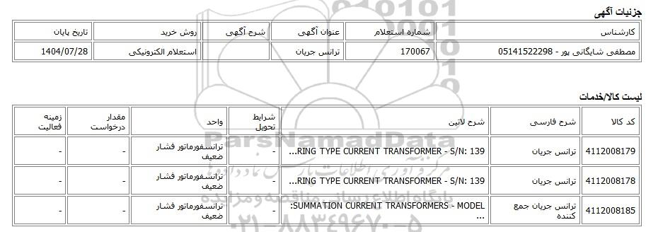 مصطفی شایگانی پور - 05141522298170067ترانس جریاناستعلام الکترونیکی1404/07/28