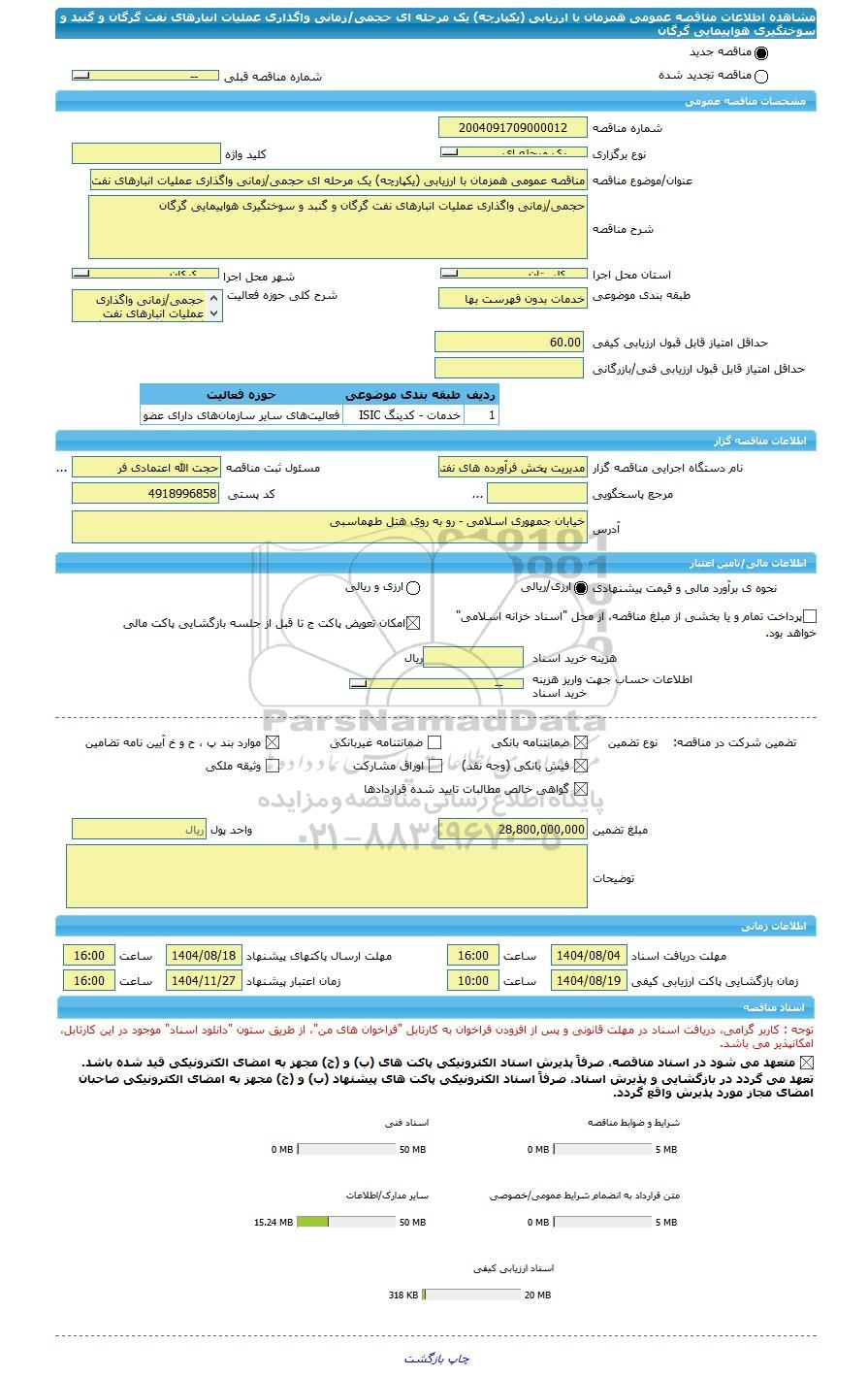 | مبلغ تضمین | 28,800,000,000 | واحد پول | ریال |