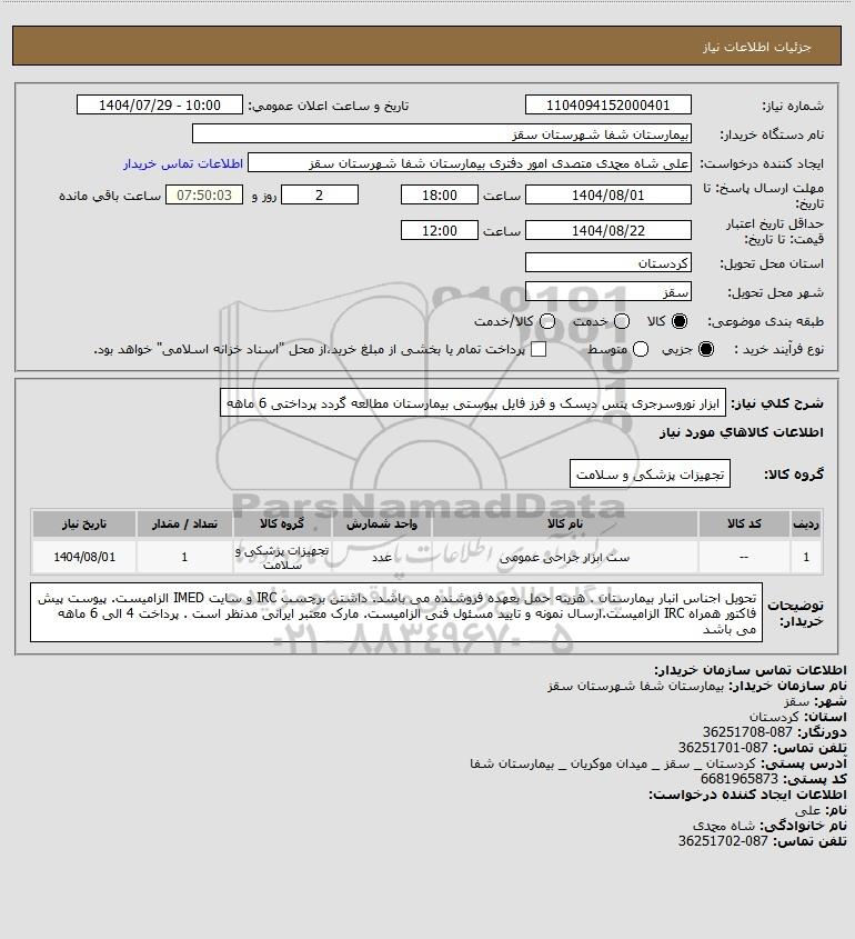 نام دستگاه خریدار:بیمارستان شفا شهرستان سقز