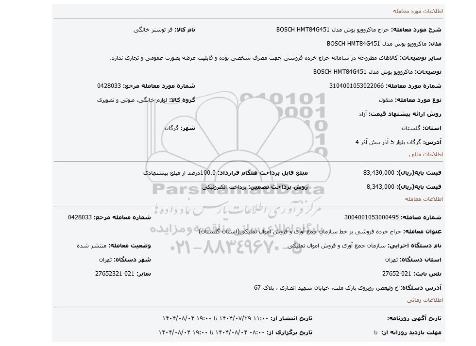 | شماره مورد معامله: 3104001053022066 | شماره مورد معامله مرجع: 0428033 | |