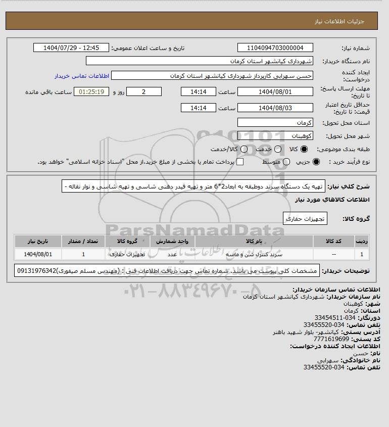 نام دستگاه خریدار:شهرداری کیانشهر استان کرمان