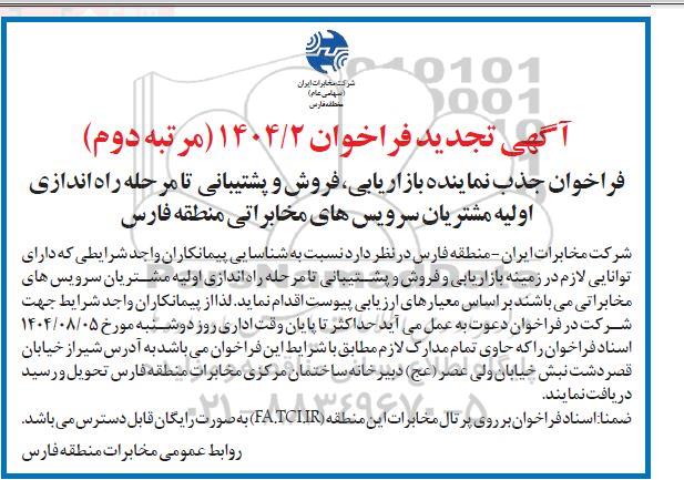 فراخوان جذب نماینده بازاریابی، فروش و پشتیبانی تا مرحله راه اندازی اولیه مشتریان سرویس های مخابراتی منطقه فارس