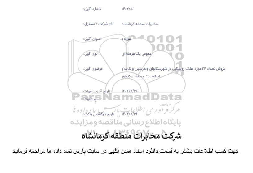 برای شرکت در مناقصه حتما از تصویر آگهی در سایت پارس نماد داده ها استفاده نمایید