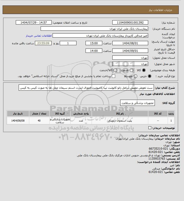نام سازمان خریدار: بیمارستان بانک ملی ایران تهران