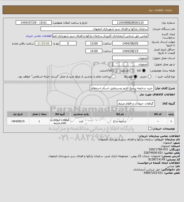 نام دستگاه خریدار:سازمان پارکها و فضای سبز شهرداری اصفهان