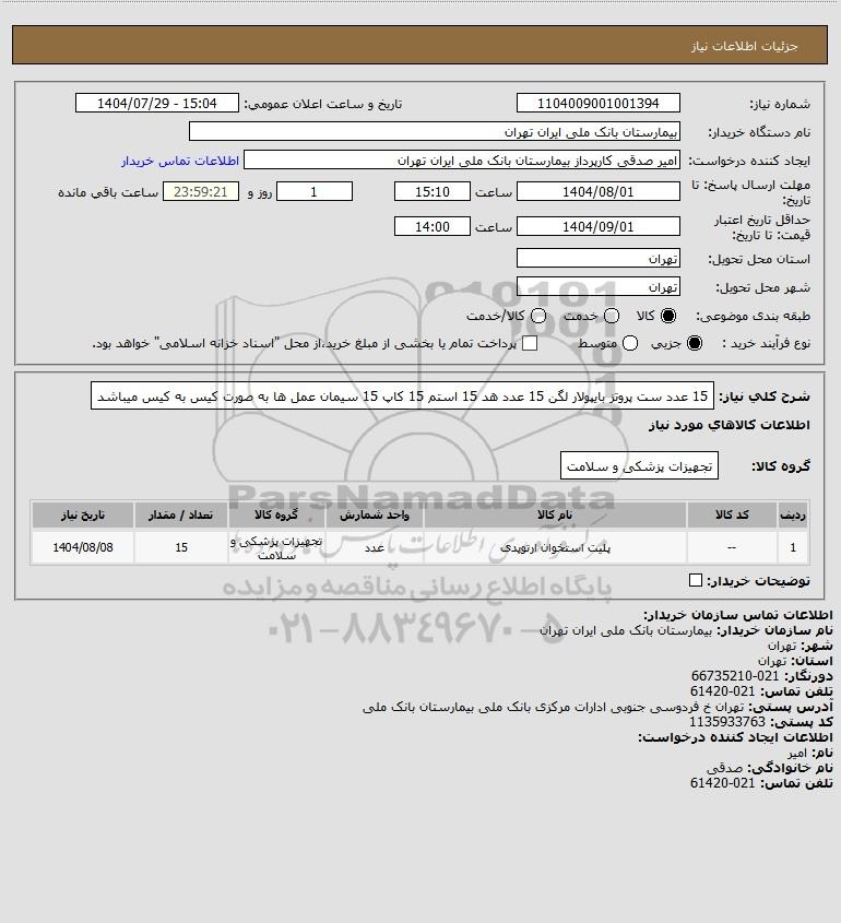 نام دستگاه خریدار:بیمارستان بانک ملی ایران تهران