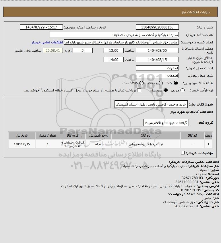 شرح کلی نیاز: خرید درختچه کامیس پاریس طبق اسناد استعلام