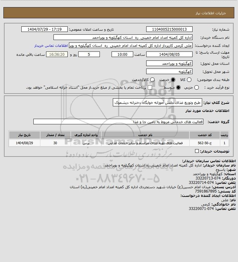نام دستگاه خریدار:اداره کل کمیته امداد امام خمینی ره استان کهگیلویه و بویراحمد