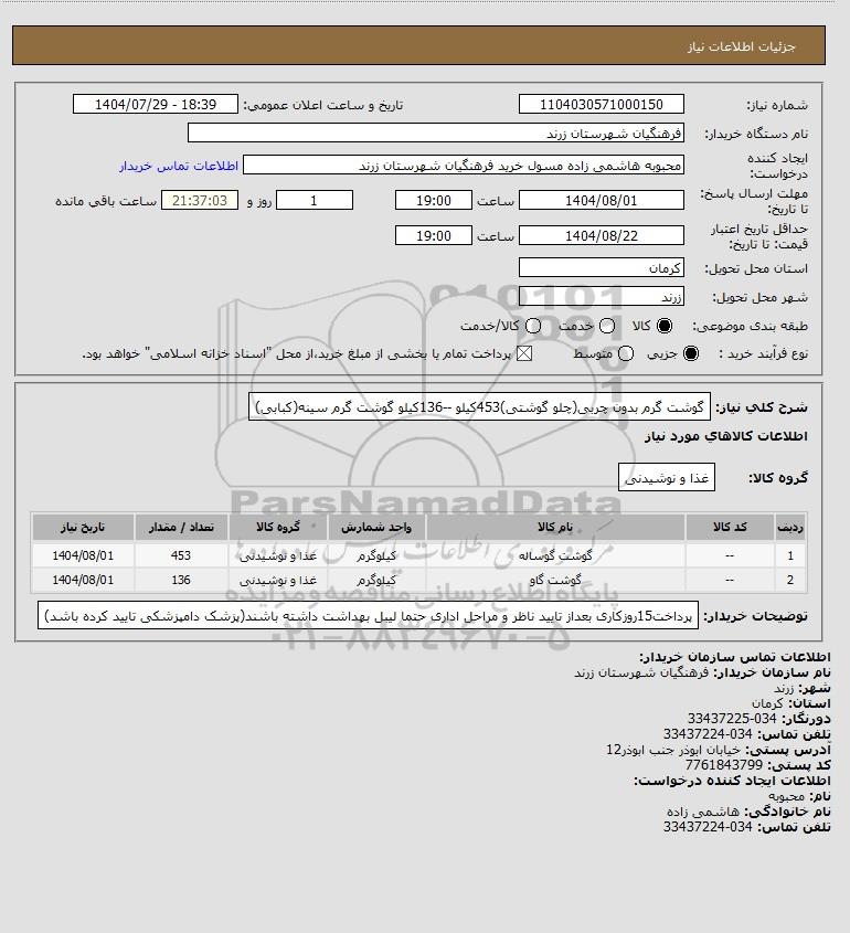 شرح کلی نیاز: گوشت گرم بدون چربی(چلو گوشتی)453کیلو --136کیلو گوشت گرم سینه(کبابی)