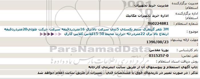 استعلام 3M تلفر گریفری سیم بکسلی 5تنی سرعت بالابری, مناقصه, استعلام 3M تلفر گریفری سیم بکسلی 5تنی سرعت بالابری