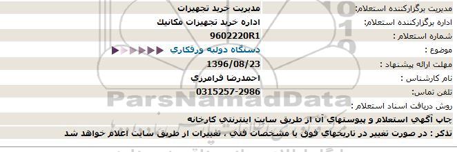 استعلام دستگاه دولبه ورقکاری, مناقصه, استعلام دستگاه دولبه ورقکاری