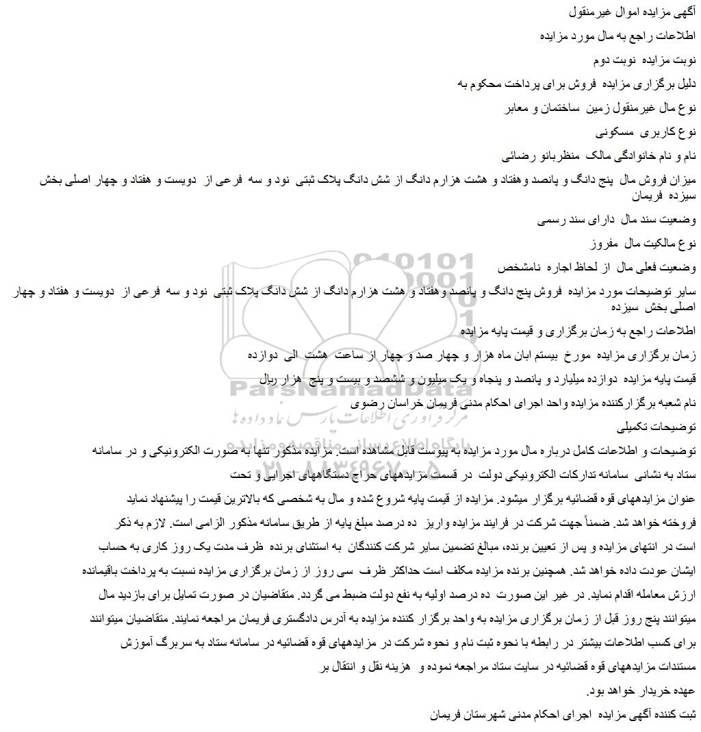 ثبت کننده آگهی مزایده اجرای احکام مدنی شهرستان فریمان