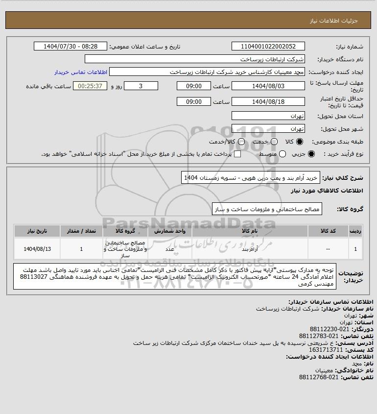 | 1 | -- | آرام بند | عدد | مصالح ساختمانی و ملزومات ساخت و ساز | 1 | 1404/08/13 |
