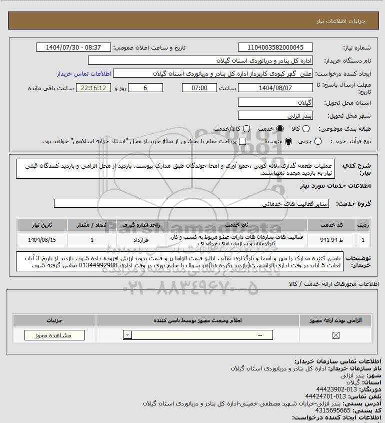 نام دستگاه خریدار:اداره کل بنادر و دریانوردی استان گیلان