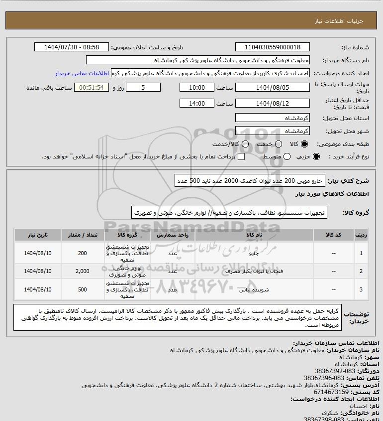 نام دستگاه خریدار:معاونت فرهنگی و دانشجویی دانشگاه علوم پزشکی کرمانشاه