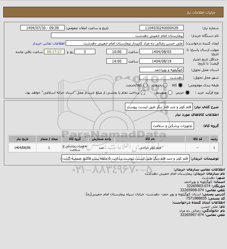 1 -- قلم کوتر جراحی عدد تجهیزات پزشکی و سلامت 1 1404/08/06