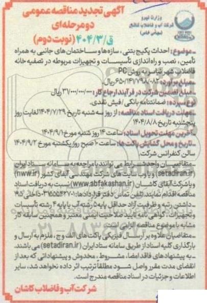 تجدید مناقصه احداث پکیج بتنی، سازه ها و ساختمانهای جانبی .... نوبت دوم, تجدید مناقصه احداث پکیج بتنی، سازه ها و ساختمانهای جانبی ....نوبت دوم