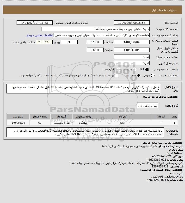 | 1 | -- | ادویه | کیلوگرم | غذا و نوشیدنی | 60 | 1404/08/04 |