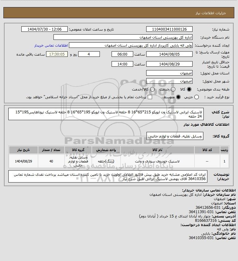 شرح کلی نیاز: لاستیک ایرانی لاستیک ون ایویکو 215*65*16 8 حلقه لاستیک ون ایویکو 195*65*16 8 حلقه لاستیک تیوتاهایس195*15 24 حلقه