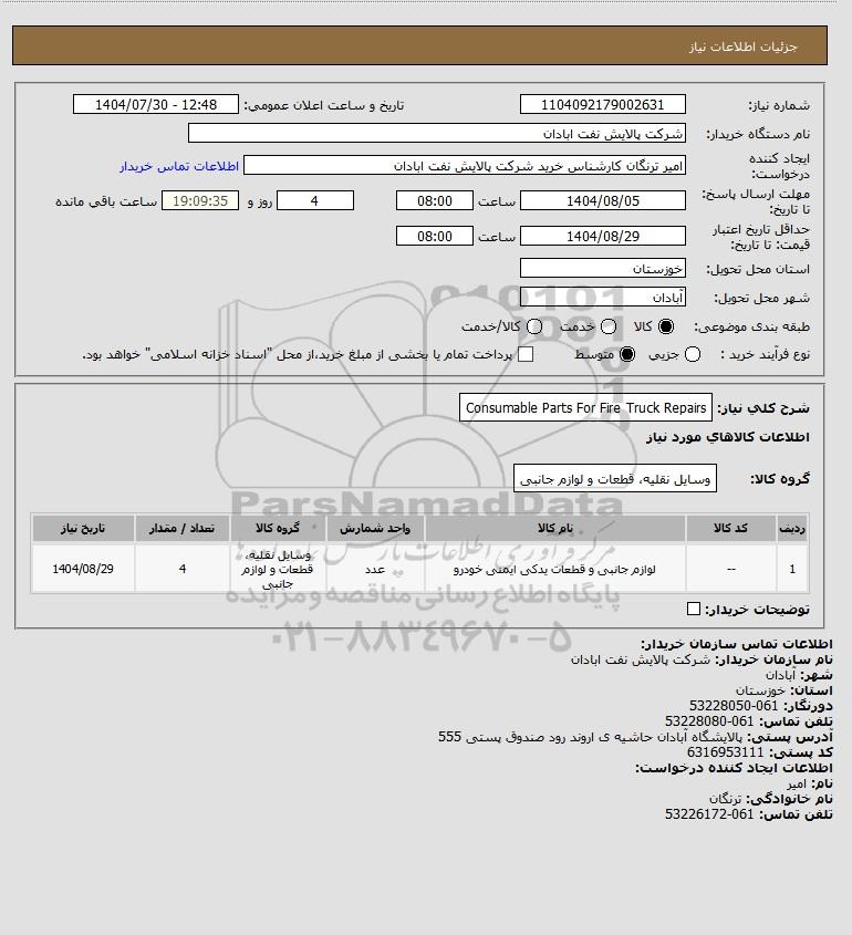 شرح کلی نیاز: Consumable Parts For Fire Truck Repairs