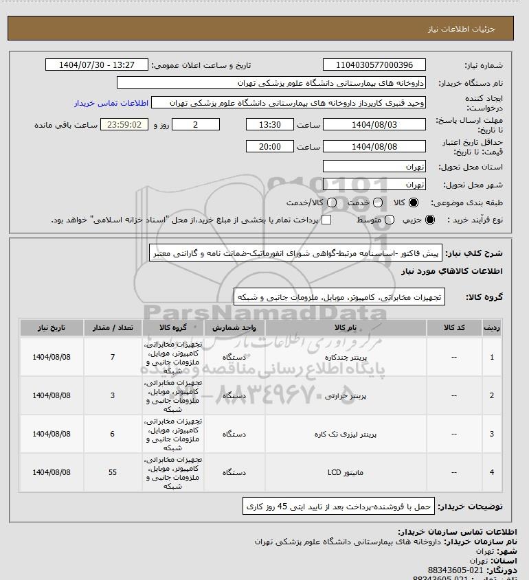 نام دستگاه خریدار:داروخانه های بیمارستانی دانشگاه علوم پزشکی تهران