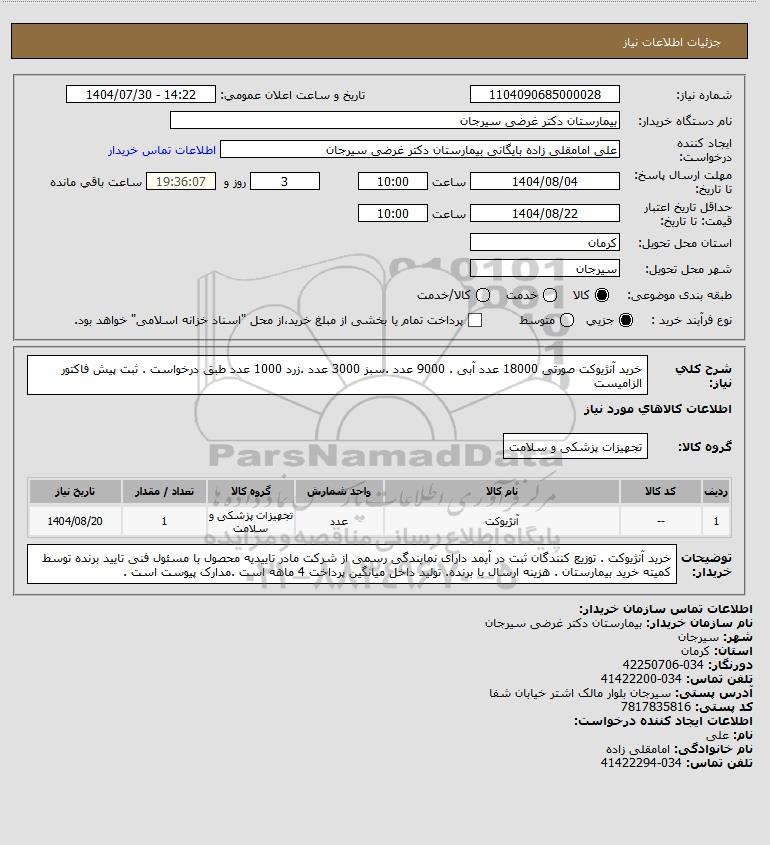 نام دستگاه خریدار:بیمارستان دکتر غرضی سیرجان