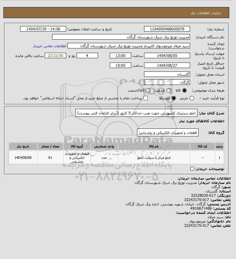 نام دستگاه خریدار:مدیریت توزیع برق شرق شهرستان گرگان